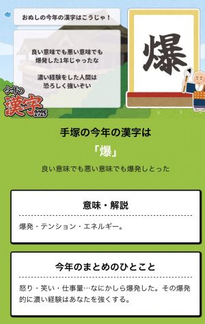 手塚の今年の漢字(*^^*)爆?こんばんは