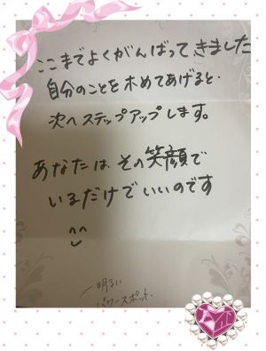 実は私、ほんとはそんなに自分に自信がなくて、自分に対して、もっと頑張らないと、もっと上を目指さないとって、自分を責めたり、いつも私はまだまだだって思ってたので、あいと優しさに満ちた鑑定に感激して泣きそうになりました(涙)