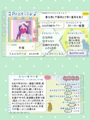 今日の診断テストは手塚のプロフィール性格板(*^^*)昨日は恋愛
