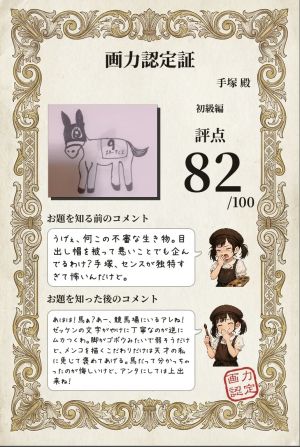 手塚の馬の絵おもしろいと言われるので、今回本気出して、顔がかわいい桜花賞にも出るスターアニスちゃんを書いたら82点(*^^*)?