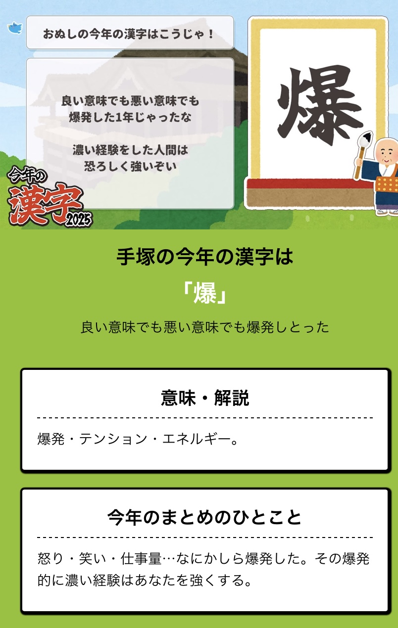 手塚の今年を感じで表すと爆になりました(*^^*)?