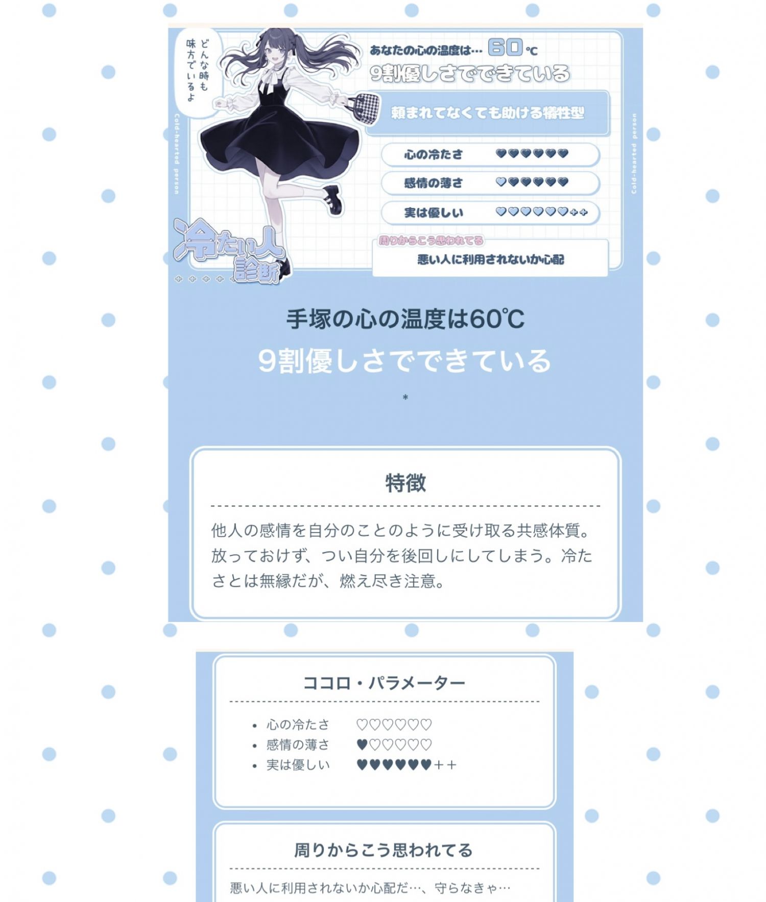今日の診断テストは手塚の心の温度(*^^*)高いみたいです?