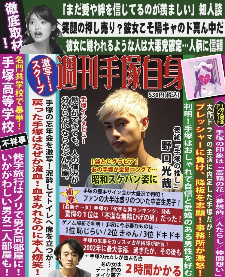 今日の診断テストは新規さんからもりぴさんからも、おもしろすぎると毎回好評の週間手塚自身です(*^^*)