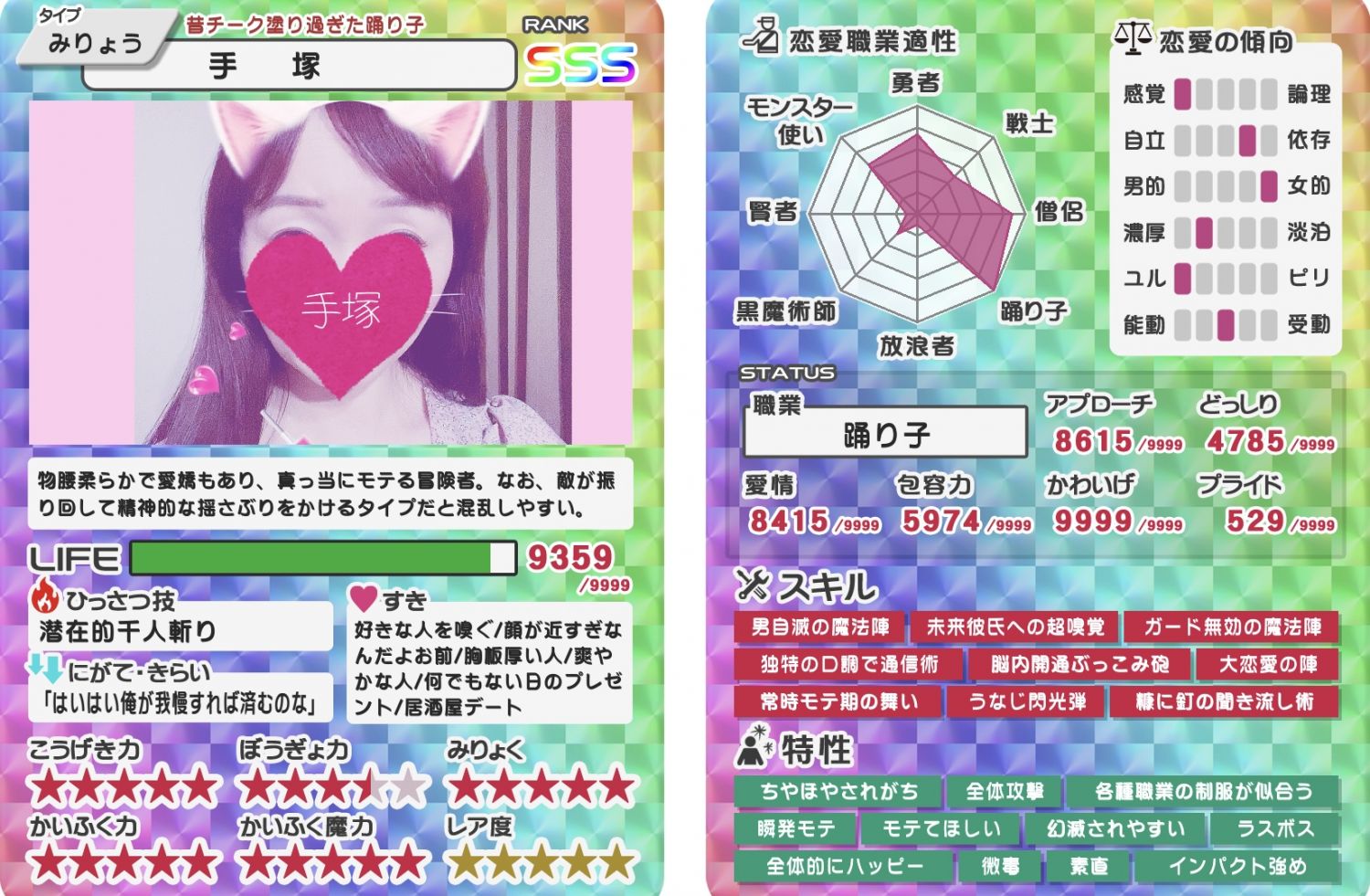 みなさんから、おもしろいと言ってもらえる手塚トレカ?今日は恋愛編(*^^*)8割当たってるかなぁ(照)笑