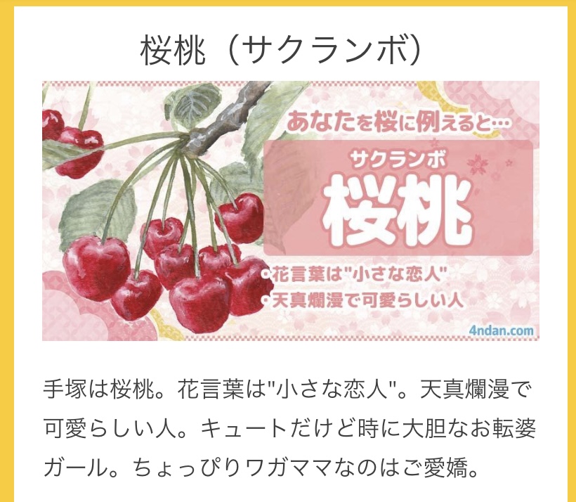 今日の診断テストは手塚を桜に例えると…桜桃さくらんぼでした(*^^*)?