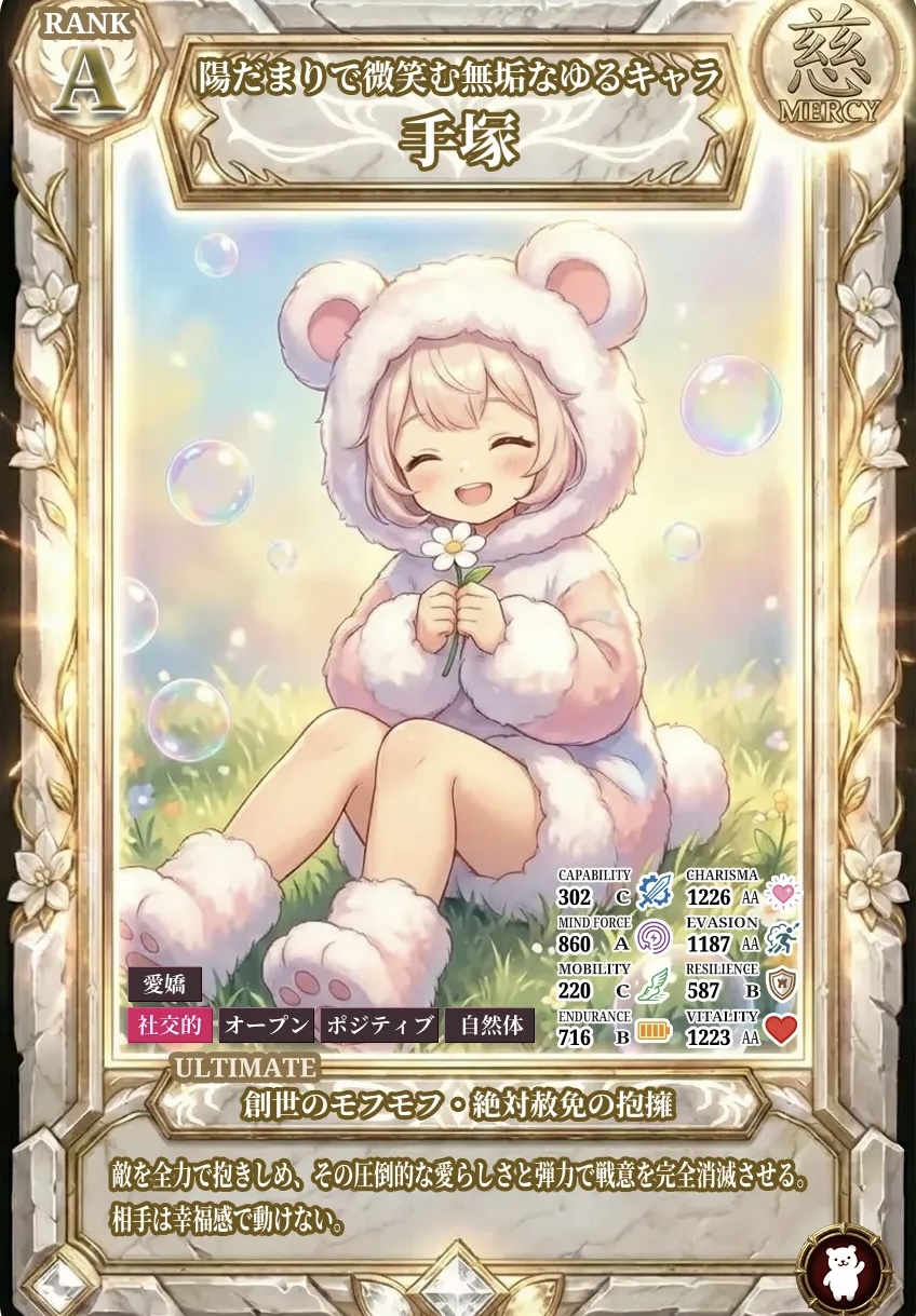 今日の診断テストは手塚をトレカにすると、陽だまりゆるキャラになりました(*^^*)(照)(笑)?