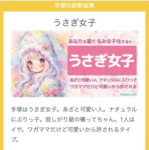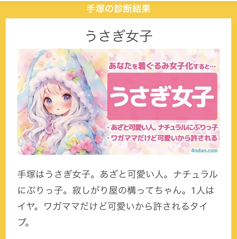 今日の診断テストは手塚を着ぐるみ女子化(*^^*)うさぎ女子になりまひた?