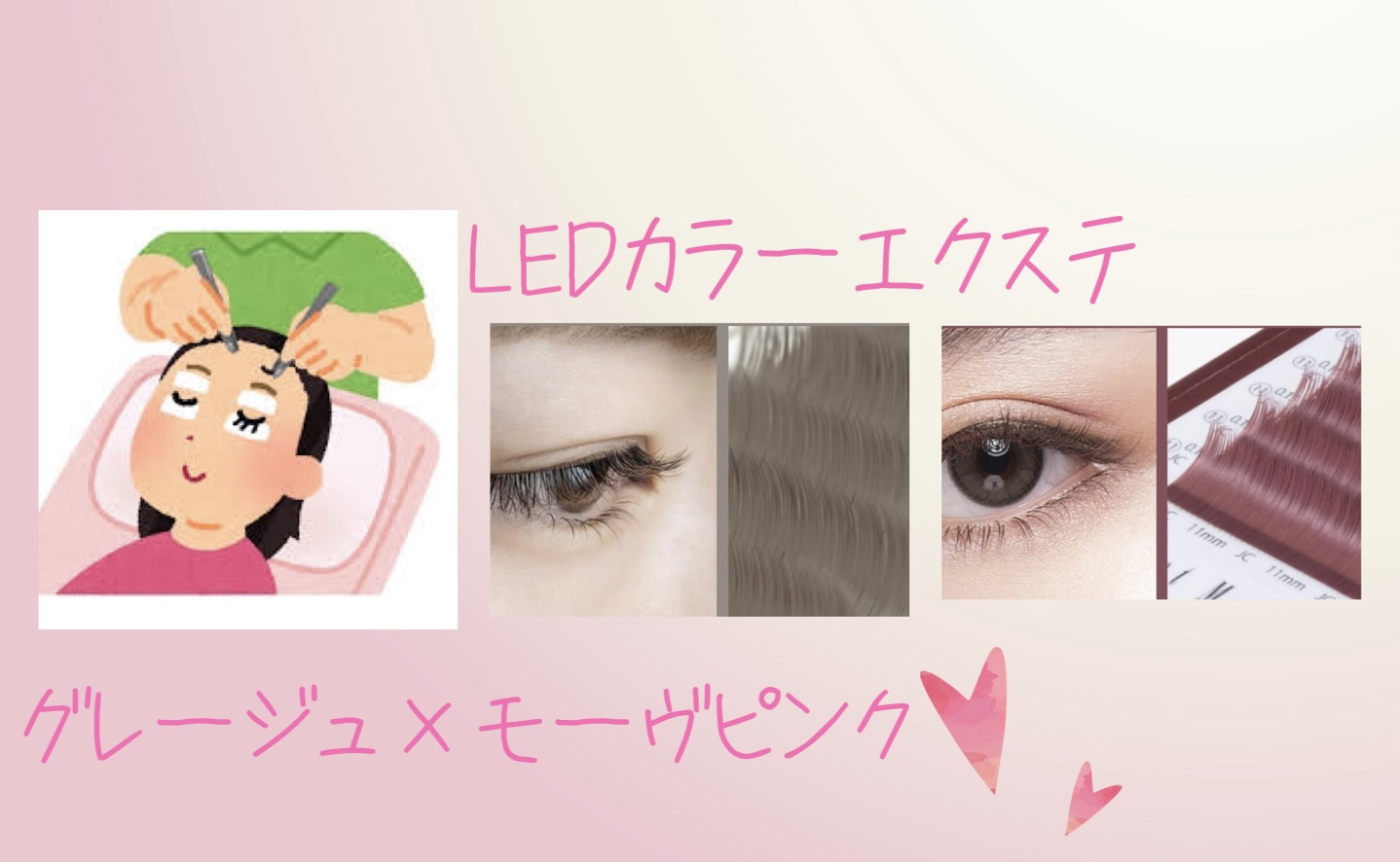 LEDカラーエクステで今回はお気に入りのモーヴピンクと、初のグレージュの組み合わせにしてもらいました(*^^*)?