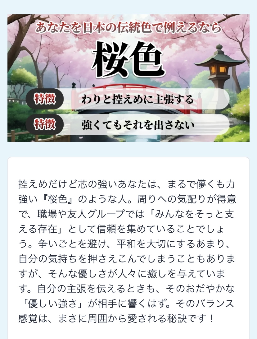 今日の診断テストは、手塚を日本の伝統色でたとえると、桜色でした(*^^*)?