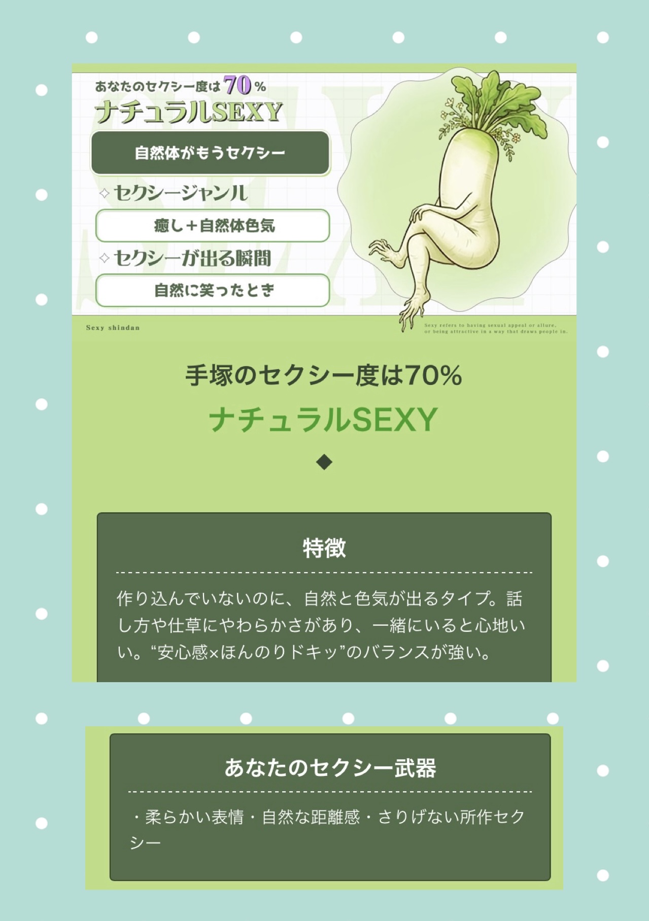 手塚のセクシー度?70パーセント?
