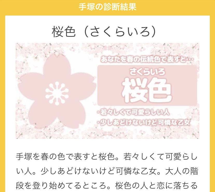 今日の診断テストは手塚を春の色に例えると桜色でした(*^^*)?