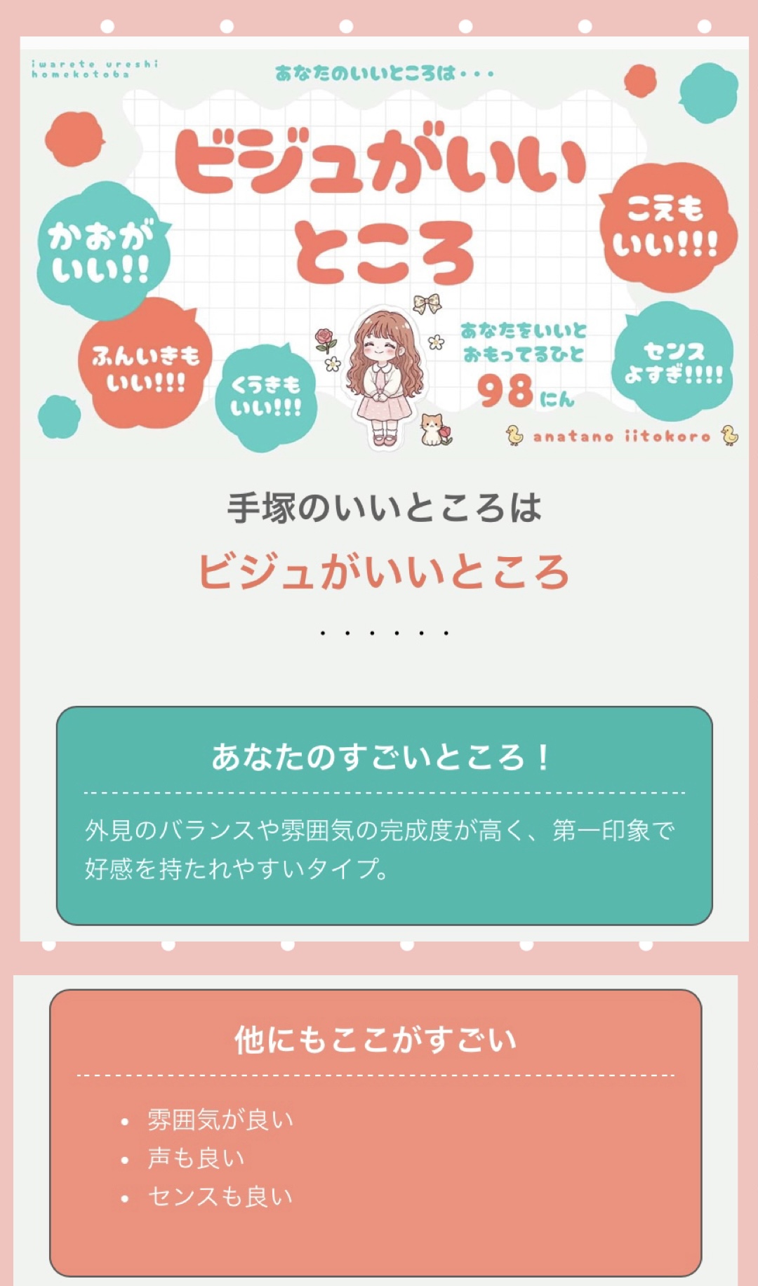 今日の診断テストは手塚のよいところ(*^^*)当たってるかなぁ??(照)(笑)
