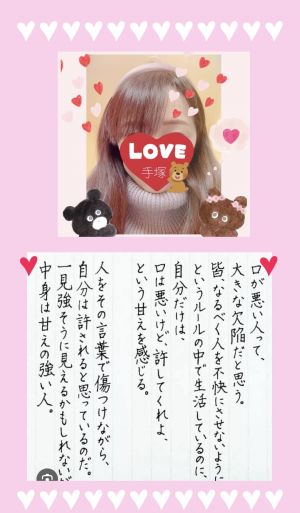 毎日リピさん達や新規さんが手塚を指名で呼んでくれるので、感謝してますし、とても嬉しいです(*^^*)