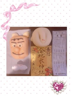 ?日が良いので金蛇水神社へ行って祈祷してもらいお守りやパンを