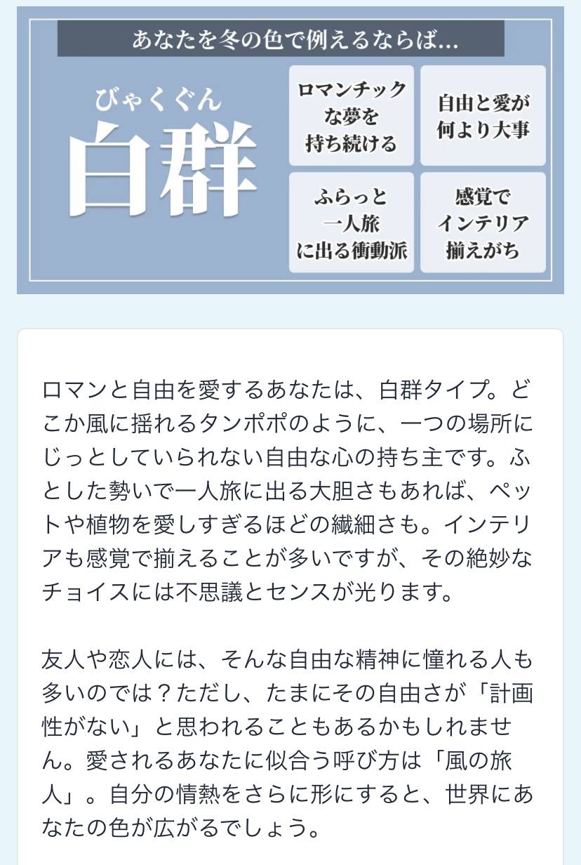 今日の診断テストは、手塚を冬の色に例えると(*^^*)これ当たってます?