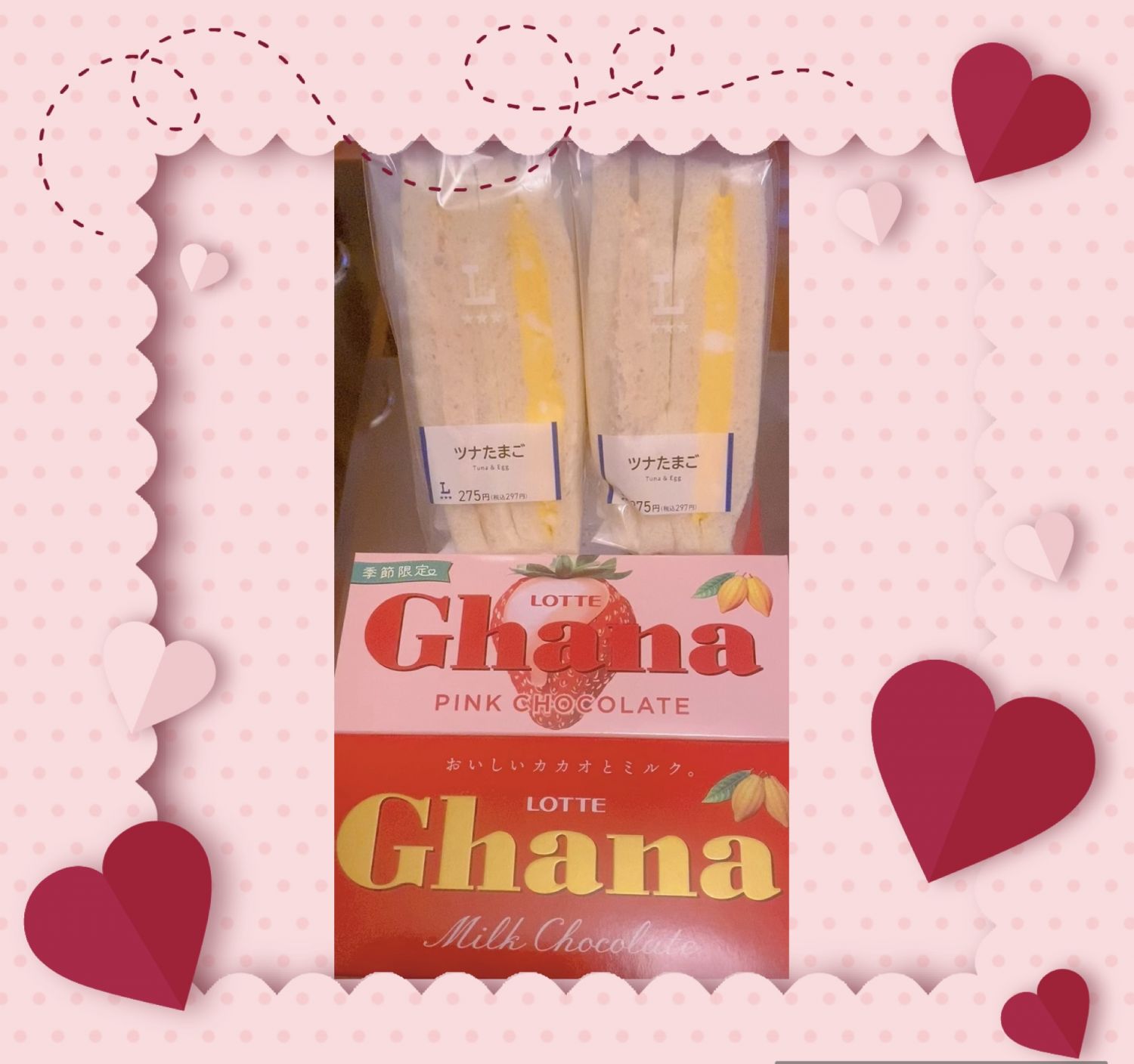 日記にガーナミルクチョコレートの日と書いてたのをみてくれて限定のいちごまで買ってきてくれて優しい(*^^*)いちごピンク色で可愛いしガーナミルクチョコもサンドイッチも好きだからおやつにしますね(*^^*)美味しくいただきます