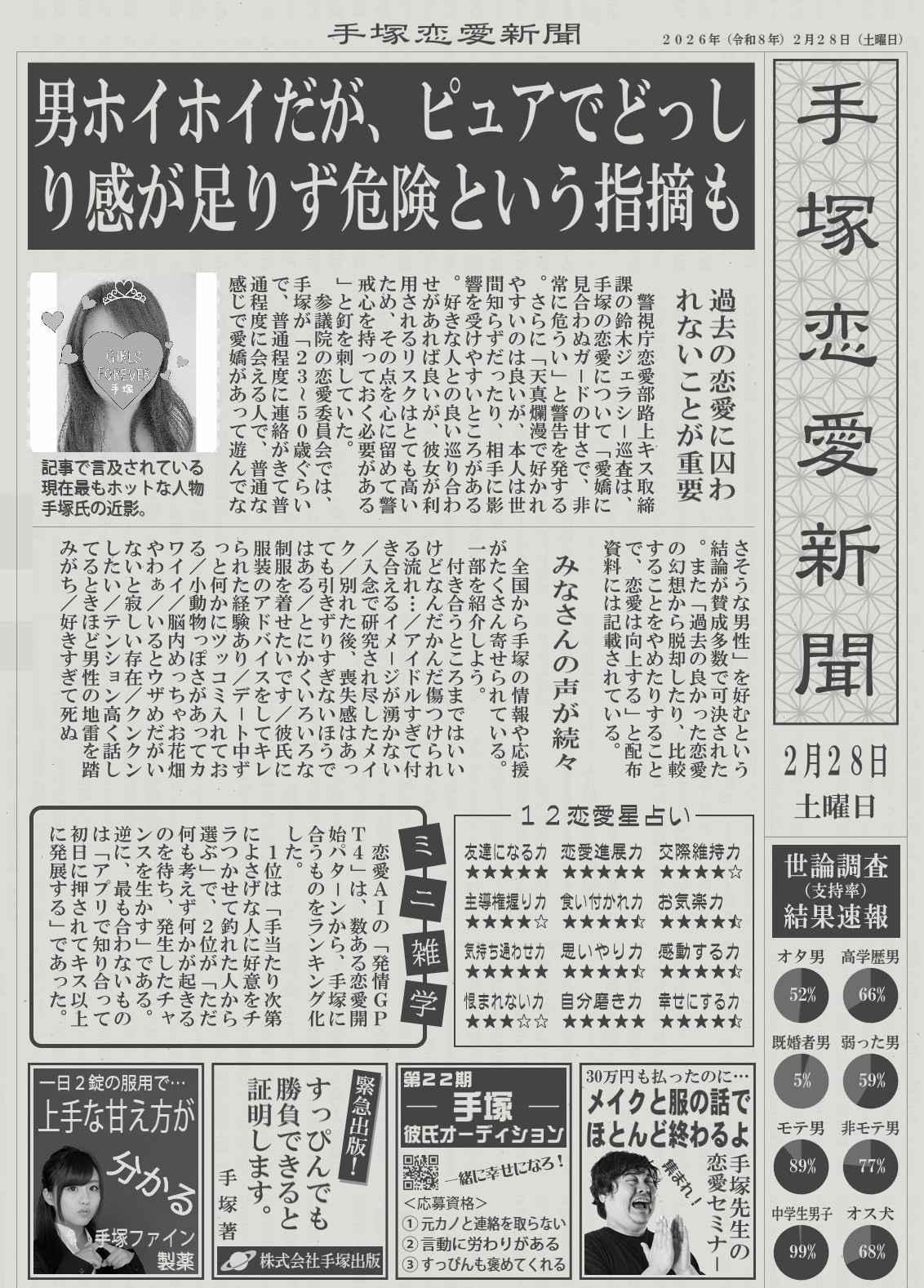 今日は昨日の続きで毎回おもしろいと、みなさんから褒めてもらえる手塚恋愛新聞です(*^^*)