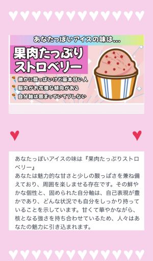 今日の診断テストは、手塚をアイスに例えると(*^^*)果肉たっぷりストロベリーでした