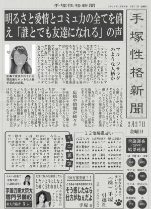 みなさんからおもしろいと褒めてもらえる手塚性格新聞発行します(*^^*)?