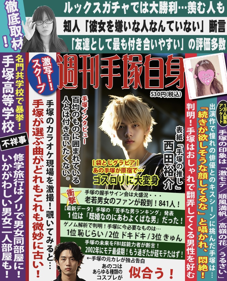 診断テストに答えると手塚の推しや元彼の写真が載ってますが、2人とも私の推しでも元彼でもありません(笑)