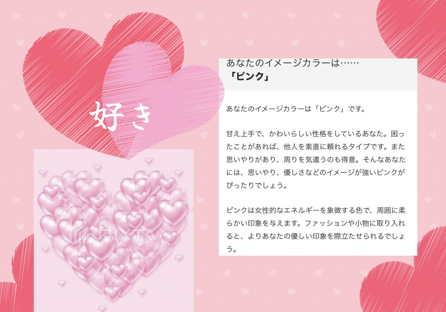 今日の診断テストは、手塚をイメージするカラー?ピンク色でした?
