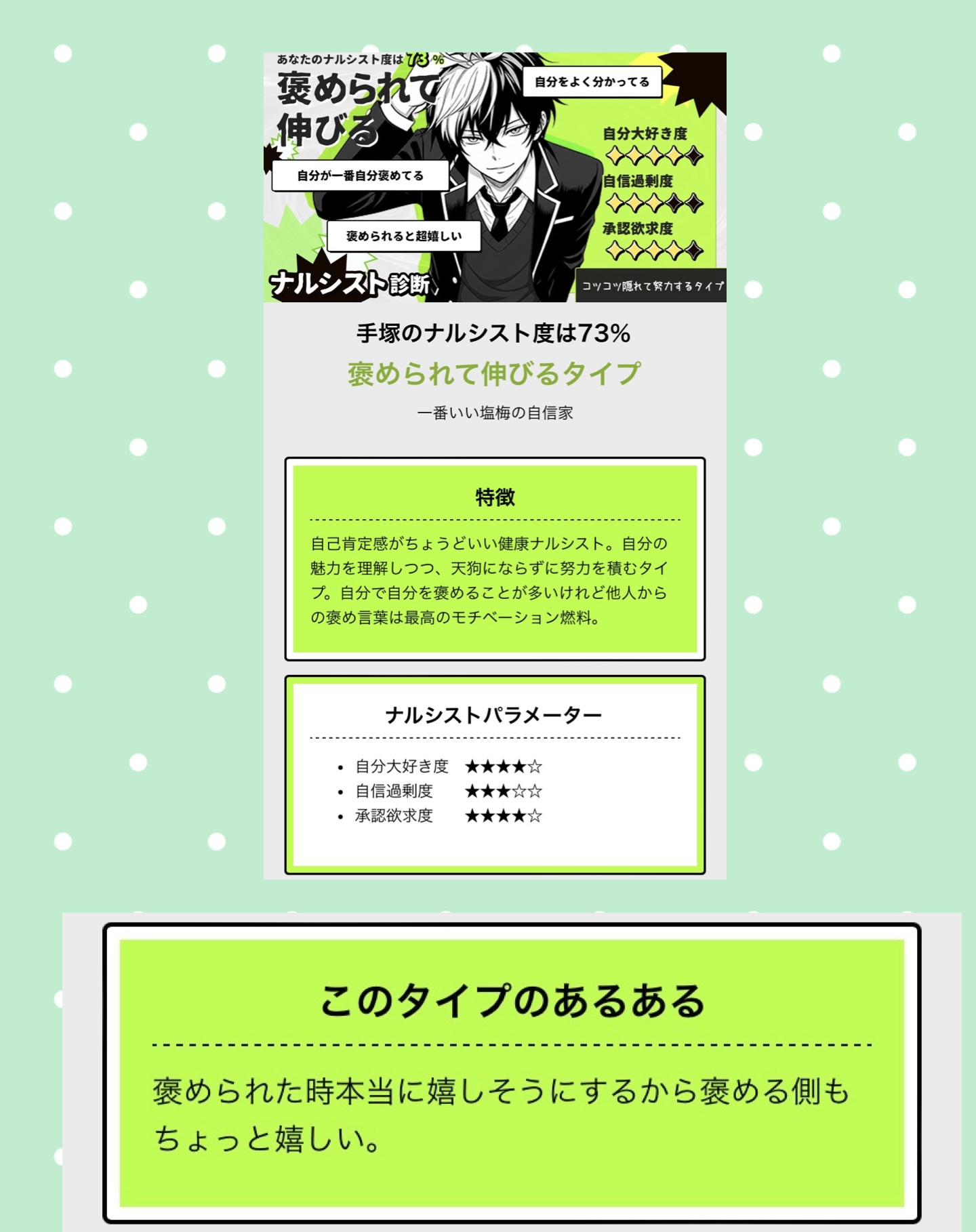 今日の診断テストは、手塚のナルシスト度(*^^*)